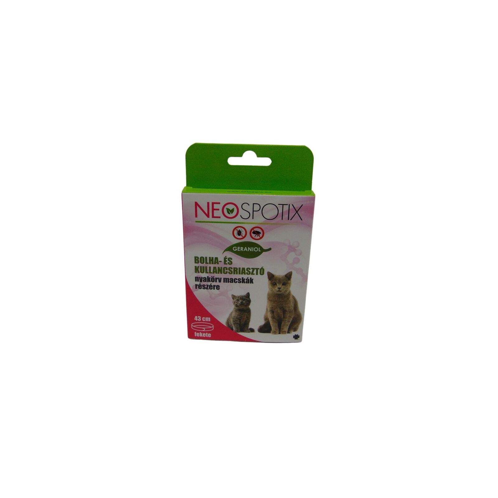 A Neospotix nyakörv egy bolha- és kullancsriasztó hatással rendelkező készítmény, melynek hatóanyaga a geraniol.